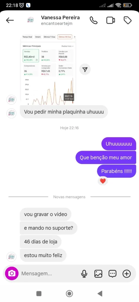 Nossa primeira conquista foi o nosso casamento que pagamos tudo com os lucros dos personalizados. Dois anos depois ele largou a CLT para seguir comigo nos personalizados.